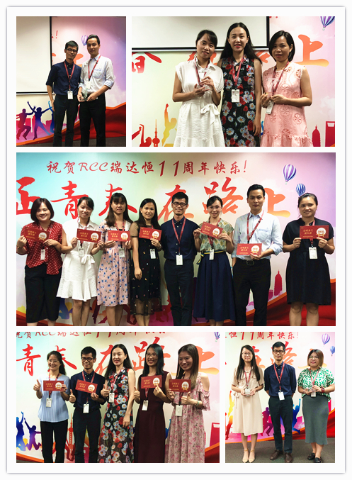 一段由RCC制作的十一周年慶視頻拉開(kāi)了慶典活動(dòng)的序幕。視頻中,敘寫(xiě)了這一年來(lái)公司取得的驕人成績(jī)與開(kāi)展的活動(dòng)、PK戰(zhàn)中RCC員工們熱血的場(chǎng)面、客戶(hù)對(duì)RCC信息的評(píng)價(jià)片段、CEO在視頻中的致辭等內(nèi)容,震撼著每一名RCC人。RCC在2017——2018年所取得的諸多創(chuàng)新和進(jìn)步、輝煌的成就和永不止步的發(fā)展態(tài)度,讓在場(chǎng)的每一名員工都倍感光榮和自豪。一個(gè)個(gè)輕松活潑的環(huán)節(jié)讓整個(gè)活動(dòng)現(xiàn)場(chǎng)其樂(lè)融融,充分展現(xiàn)了RCC大家庭的團(tuán)結(jié)與溫暖,把氣氛推向了高潮。公司領(lǐng)導(dǎo)還為眾多在RCC工作三年或以上的員工頒發(fā)了“忠誠(chéng)員工特殊獎(jiǎng)”,本次的頒獎(jiǎng)把原先贈(zèng)予金器的形式改為發(fā)放面額1000元到4000元的“成長(zhǎng)券”形式,專(zhuān)門(mén)用于購(gòu)買(mǎi)圖書(shū)、線(xiàn)上課程、健身卡,幫助老員工提升職場(chǎng)專(zhuān)業(yè)技能和能力、鼓勵(lì)他們積極鍛煉,保持健康的體魄。新的獎(jiǎng)品形式不僅代表著公司感謝忠誠(chéng)員工與公司共成長(zhǎng)的情誼,還表明公司對(duì)員工全面發(fā)展的高度重視,公司也將一如既往地為更多有能力、有思想的員工提供更為廣闊的發(fā)展空間。最后,在團(tuán)結(jié)與溫暖氣氛中,在全體RCC員工對(duì)公司的祝福里,公司十一周年慶典活動(dòng)落下帷幕。